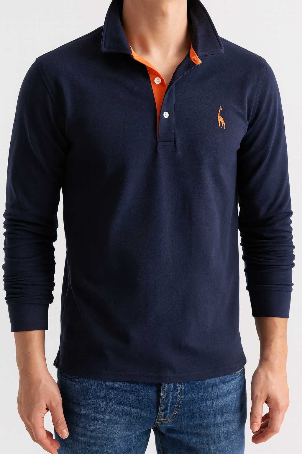 Trade the “same old” for a polo shirt that elevates your look in seconds. The AIOPESON Long-Sleeve Polo Shirt blends sophisticated navy blue with striking orange details to deliver a modern, commanding, and highly versatile style — perfect for the UK climate and any occasion: office, date night, pub, or travel.